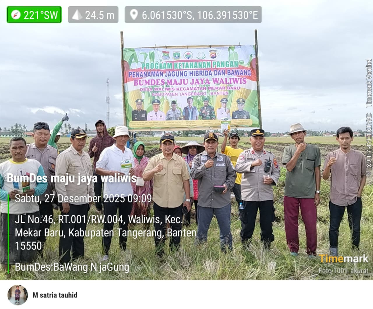 TANGERANG — Badan Usaha Milik Desa (BUMDesa) Maju Jaya Desa Waliwis, Kecamatan Mekar Baru, Kabupaten Tangerang, melaksanakan kegiatan penanaman jagung hibrida dan bawang sebagai bagian dari Program Ketahanan Pangan Desa, pada Sabtu (27/12/2025). Kegiatan ini dipusatkan di Kampung Waliwis RT 01 RW 04, Desa Waliwis.