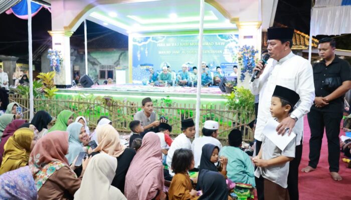 KABUPATEN TANGERANG — Bupati Tangerang, Drs. Moch. Maesyal Rasyid, M.Si., menghadiri Peringatan Isra Mi’raj Nabi Muhammad SAW yang dirangkaikan dengan Peresmian Masjid Jami Al Huda di Desa Pagenjahan, Kecamatan Kronjo, Sabtu malam (3/1/2026).