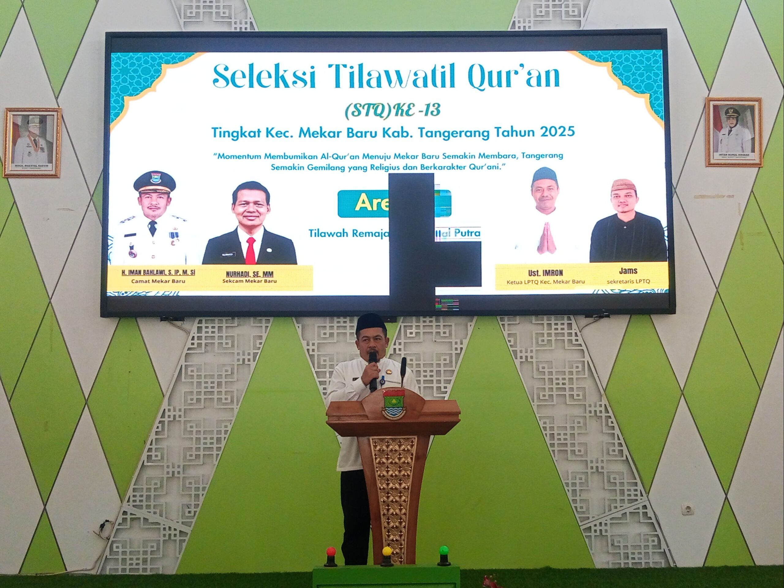 KitaTangerang.id, TANGERANG – Camat Mekar Baru, H. Iman Bahlawi, S.IP., M.Si., secara resmi membuka Seleksi Tilawatil Qur’an (STQ) ke-13 Tingkat Kecamatan Mekar Baru Tahun 2025. Kegiatan tersebut berlangsung di Gedung Serbaguna (GSG) Kecamatan Mekar Baru, Selasa (4/11/2025).