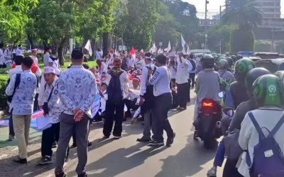 Pantauan di lapangan menunjukkan para guru membawa spanduk dan banner bertuliskan berbagai tuntutan, di antaranya “Guru Berhak PPPK” dan “Stop Diskriminasi Guru Swasta”.