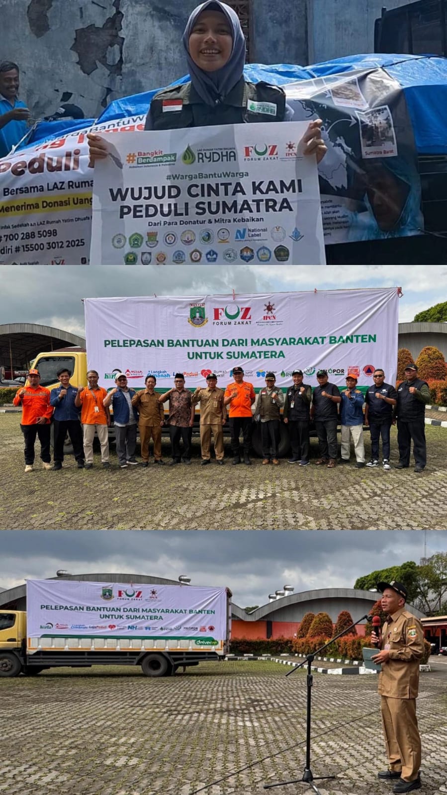 Aksi kemanusiaan tersebut merupakan hasil kolaborasi antara LAZ Rumah Yatim Dhuafa Rydha, Forum Zakat (FOZ), dan Indonesian Professional Community Network (IPCN). Bantuan difokuskan untuk meringankan beban masyarakat yang terdampak bencana di tiga provinsi tersebut.
