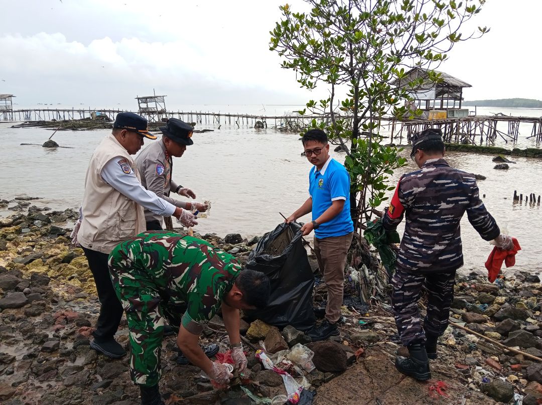Sinergi Polresta Tangerang dan KNPI Gelar Korve Bersihkan Sampah di Pulau Cangkir, Kronjo